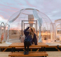 El diseño panorámico de tragaluces de la casa de cápsula espacial cuenta con una tasa de transmitancia de luz del 90%, mejorando la utilización de la luz natural en un 30% en comparación con las ventanas ordinarias. Esto significa que durante la mayor parte del día, los usuarios pueden disfrutar de un entorno interior brillante y cómodo sin necesidad de iluminación artificial, reduciendo así el consumo de energía.